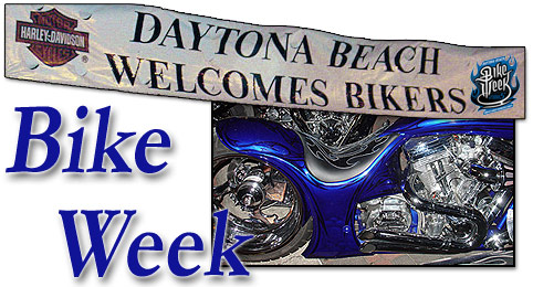 Current news, pictures and information on Bike Week Daytona Beach, motorcycle events, biker rallies, chopper builders, biker links, rally schedule, bike week camping, merchandise, photo albums and stories about Daytona Beach area.